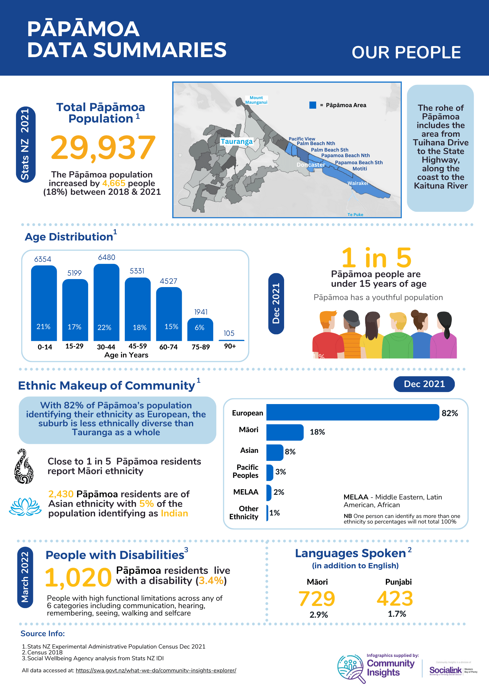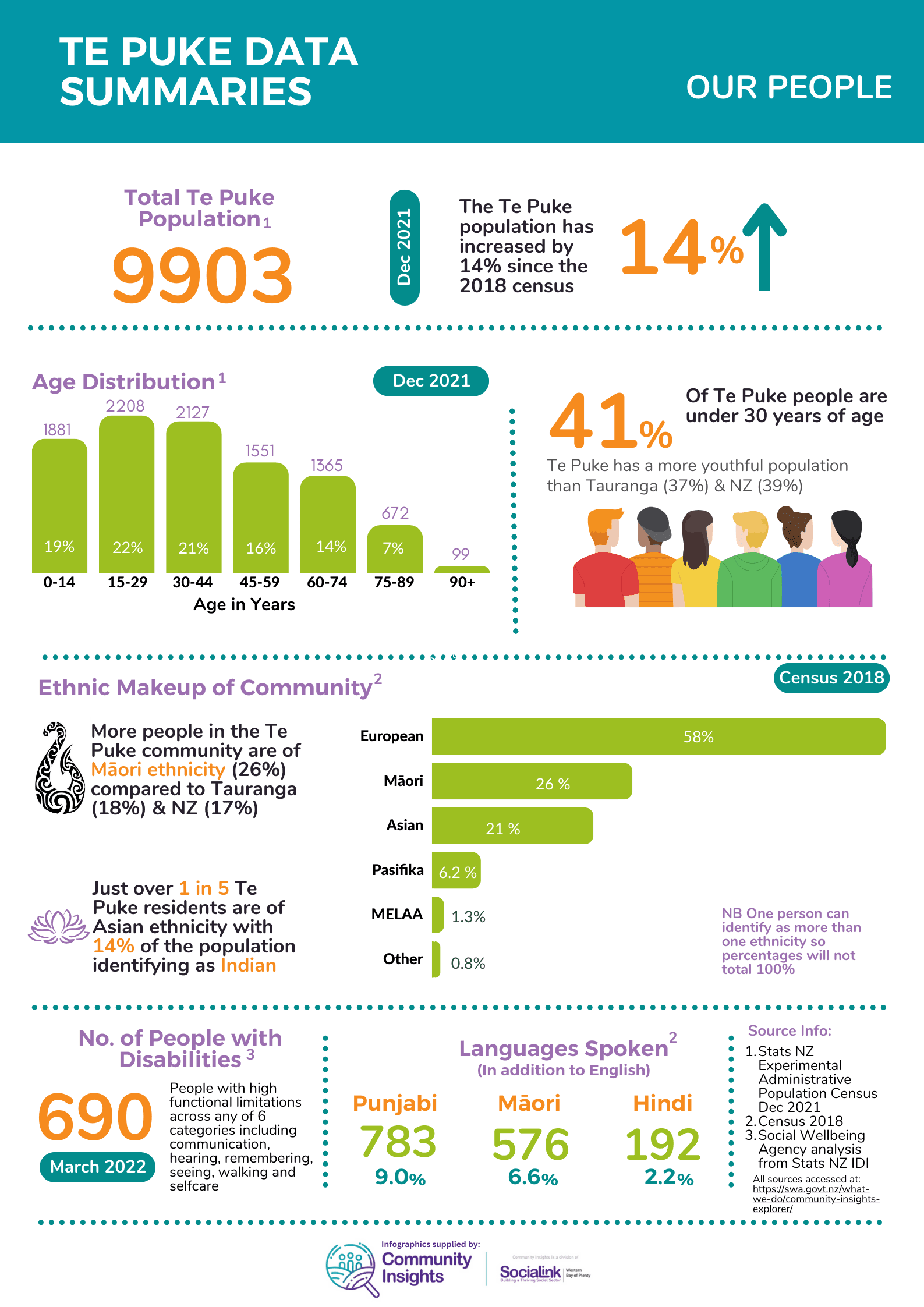 These infographics provide snapshots of key data for local communities across the western Bay of Plenty.